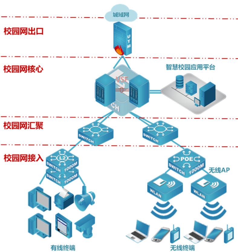 教育城域网是我国教育信息化以及基础教育信息化公共服务体系开展规划中最为关键的一环。教育城域网是以计算机网络技术为基础、以网络教育资源与教育软件为核心、以实现信息化教育和集中式管理为目的、以提高教学与管理效益为根本、为学校教育信息化给予全方位服务、指导的教育网络。教育城域网将学校等教育组织全部联接到网络中,最终形成一个区域性的互联、信息交换、资源共享和远程教育的基础构架;使各学校的网络不再孤立存在,而是完全融入到城域信息网络体系中,成为建设基础教育信息化公共服务体系的基础,为教育开展给予信息化支撑。